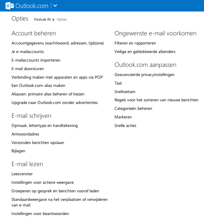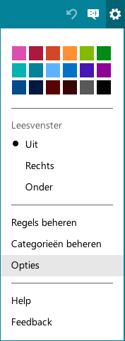 - Klik in Hotmail rechts bovenin op het tandwiel en ga naar ‘Opties’.