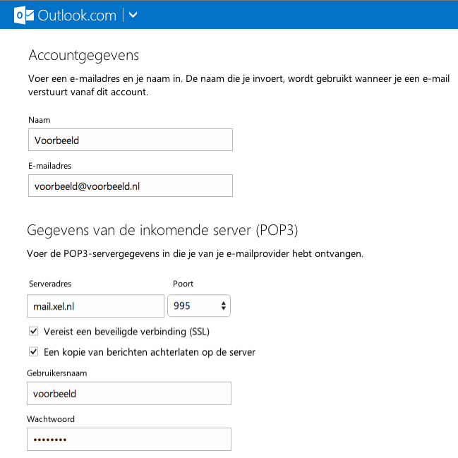 - Vul bij ‘ ’ ‘mail.xel.nl’ in.