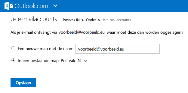 - De mail is juist ingesteld. Nu moet enkel nog de opslaglocatie van de e-mails gekozen worden.