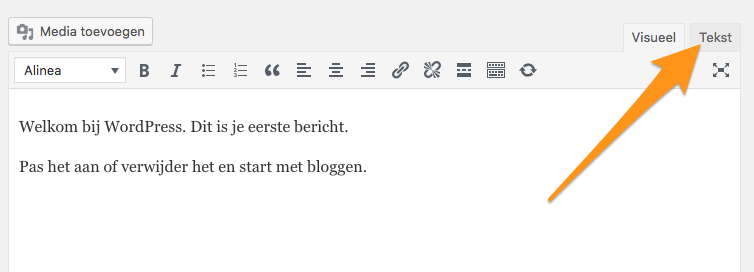 - Klik rechtsboven op ‘Tekst/text’. Naast ‘visueel‘.