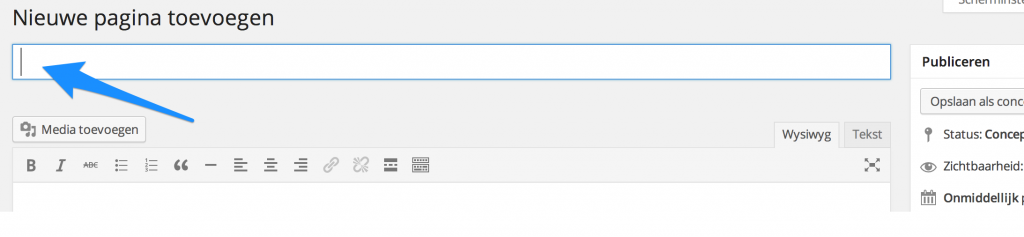 - Vul in het titelveld, de gewenste titel in voor je pagina